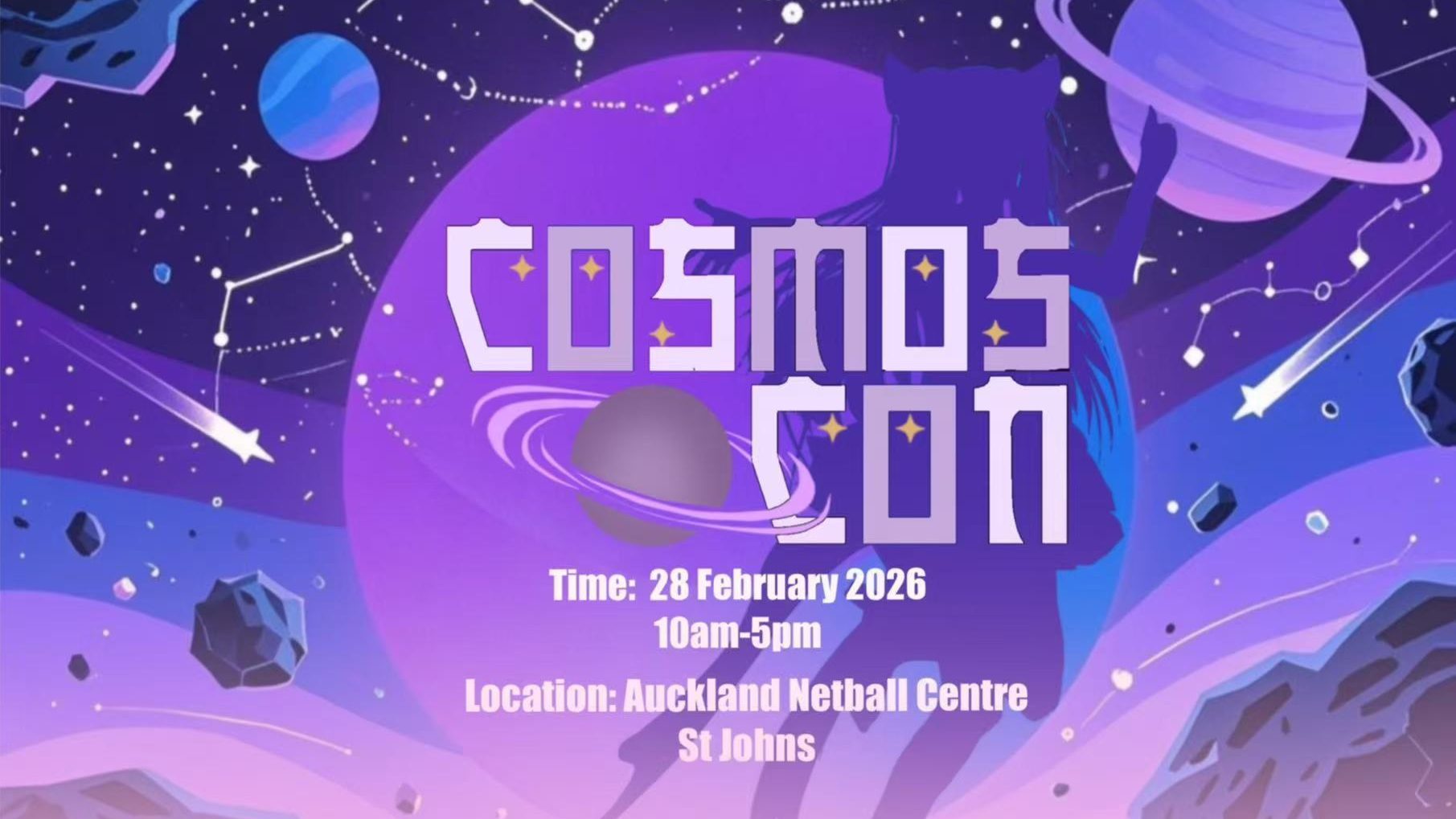 Welcome to Cosmos Con, your local, volunteer-run anime convention where creativity and passion come to life! Dive into a universe of fun with exciting photobooths to capture your best cosplay moments, thrilling cosplay competitions to showcase your talent, vibrant Artist Alley featuring amazing local creators, and heaps more interactive activities to do.
